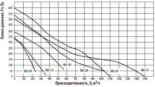 МодельПроизводительность, м3/чПолное давление, ПаЧастота вращения, об/минМощность, Вт