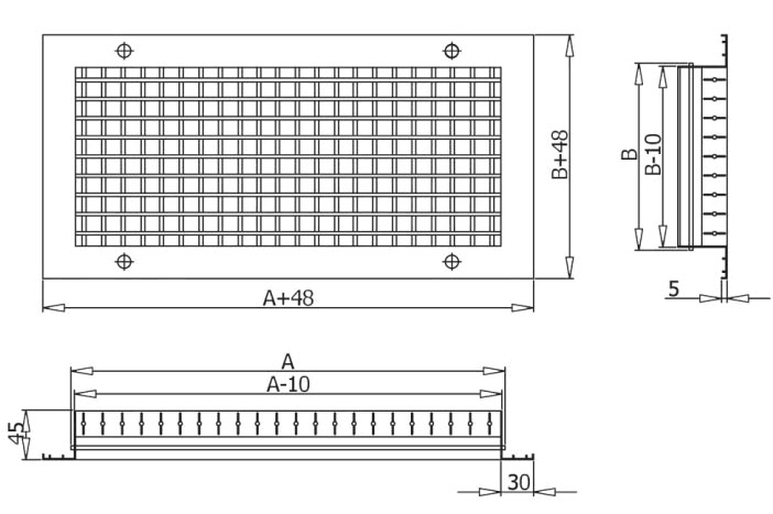 Решетки изготавливаются как стандартных типоразмеров, так и по заказу. Минимальный размер решетки 100×100 мм.